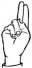 На ћирилици написано АНДРИЈАНА МУМАЛО састоји се из 15 слова [?]. Исписано ћириличном једноручном азбуком за глувонеме: